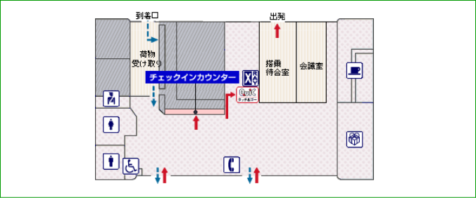1階 1F 出発カウンター/出発ロビー/到着ロビー